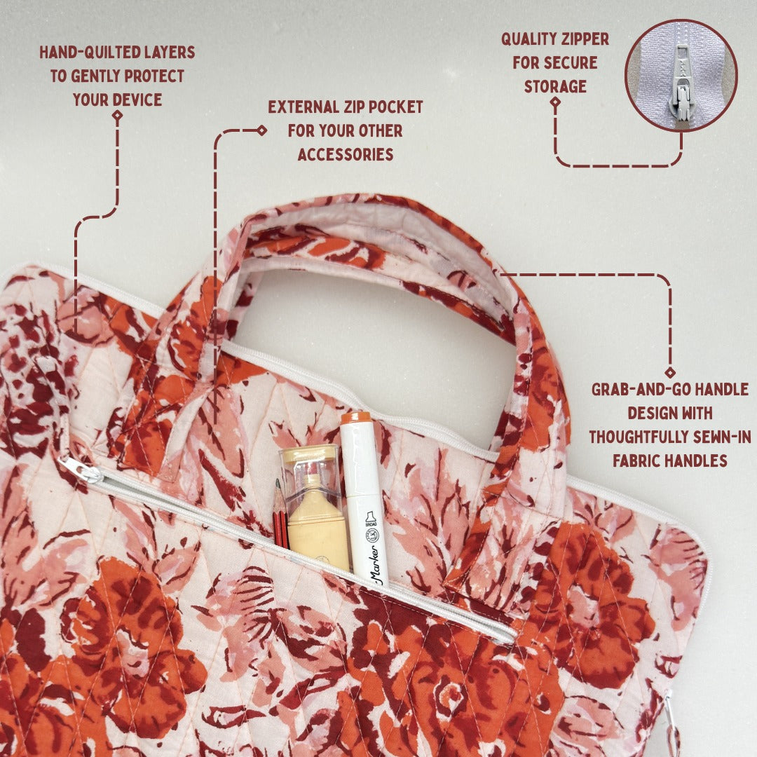 Gulzaar Rose Laptop Companion - Hand quilted, Handcrafted