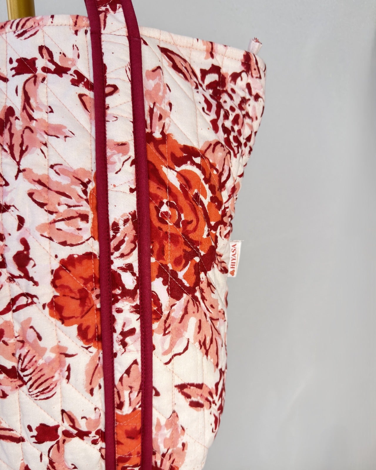 Gulzaar Rose Quilted Tote Bag | Made in Jaipur