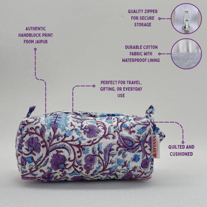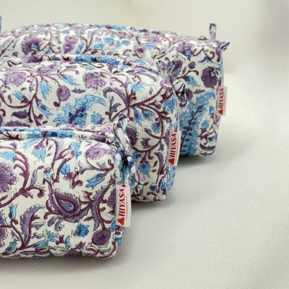 Tranquil Violet - Set of 3 Handblock Printed Quilted Pouches | Crafted in Jaipur