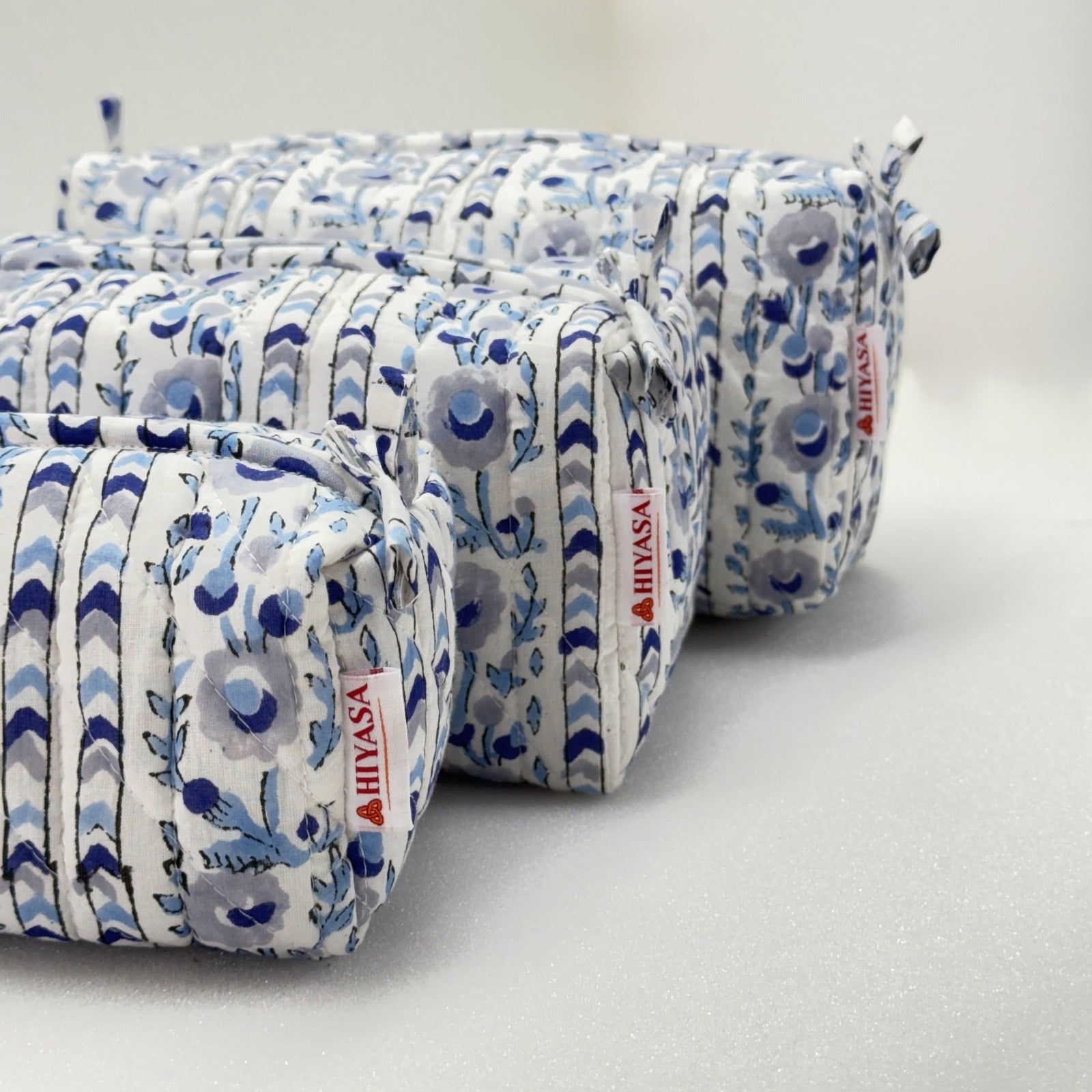 Hopeful Moonbloom - Set of 3 Handblock Printed Quilted Pouches | Crafted in Jaipur