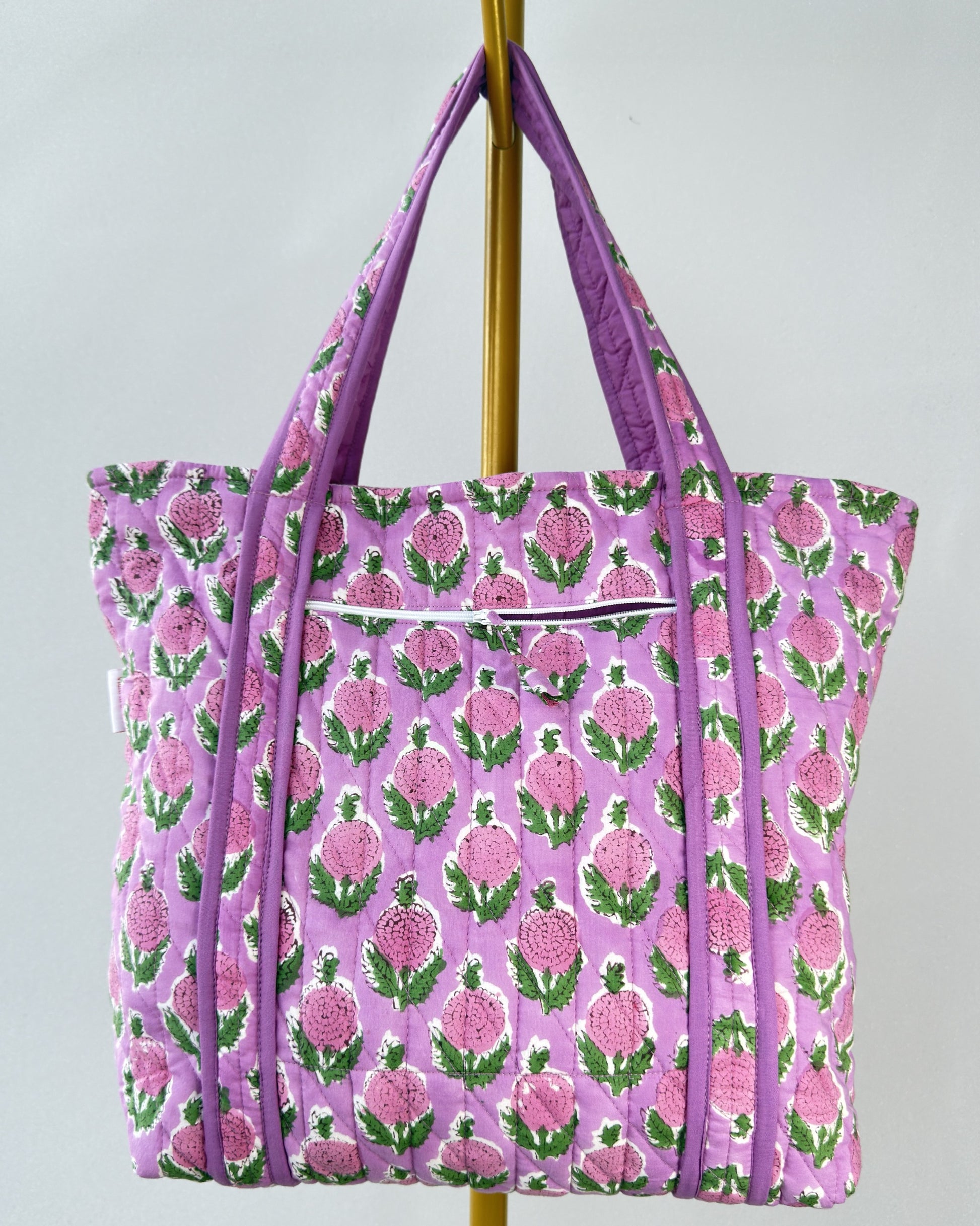 Lively Lilac Quilted Tote Bag | Made in Jaipur