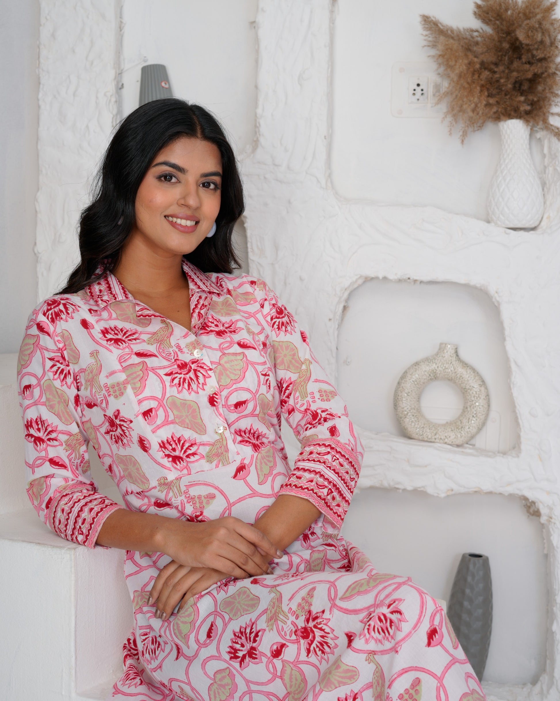Effortless charm meets everyday comfort in Hiyasa’s Pure Cotton Handblock-Printed Dress, designed to bring grace and ease to your wardrobe.