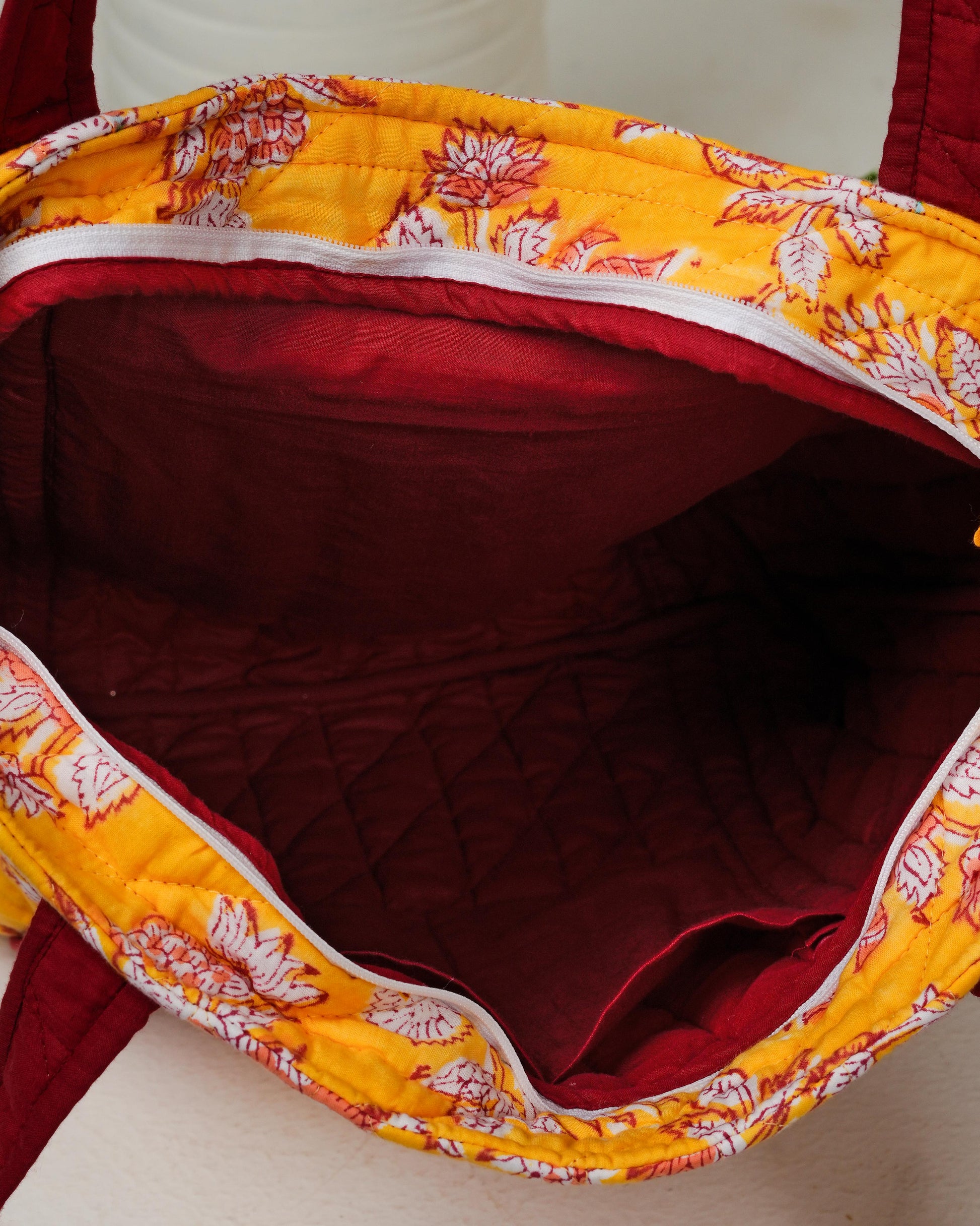 Radiant Yellow Quilted Tote Bag | Made in Jaipur