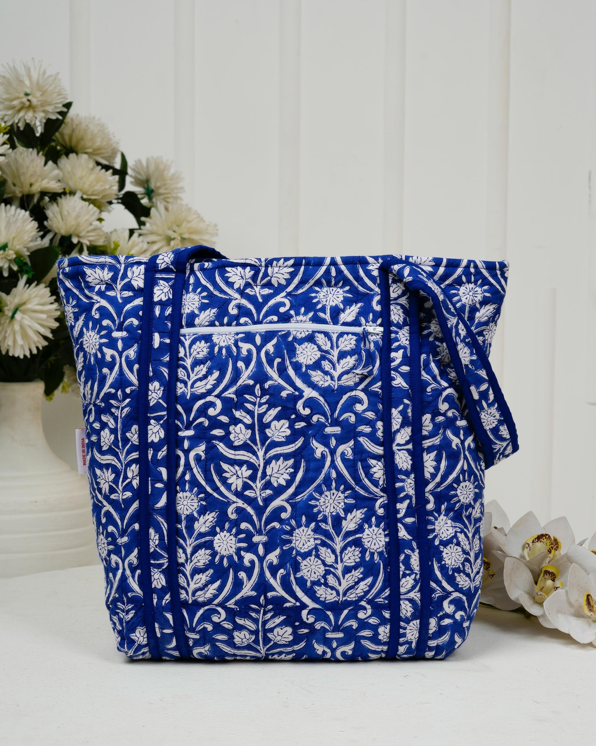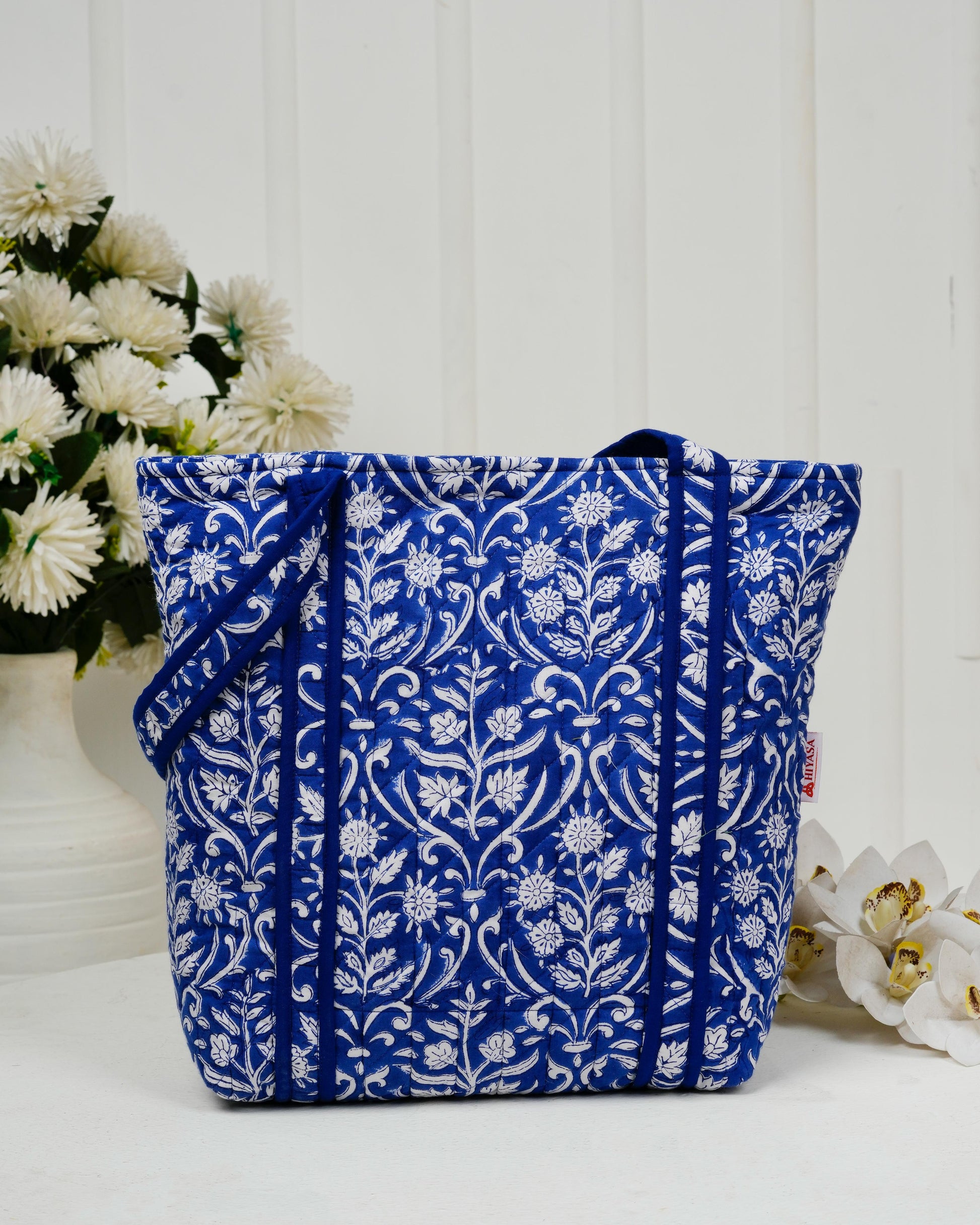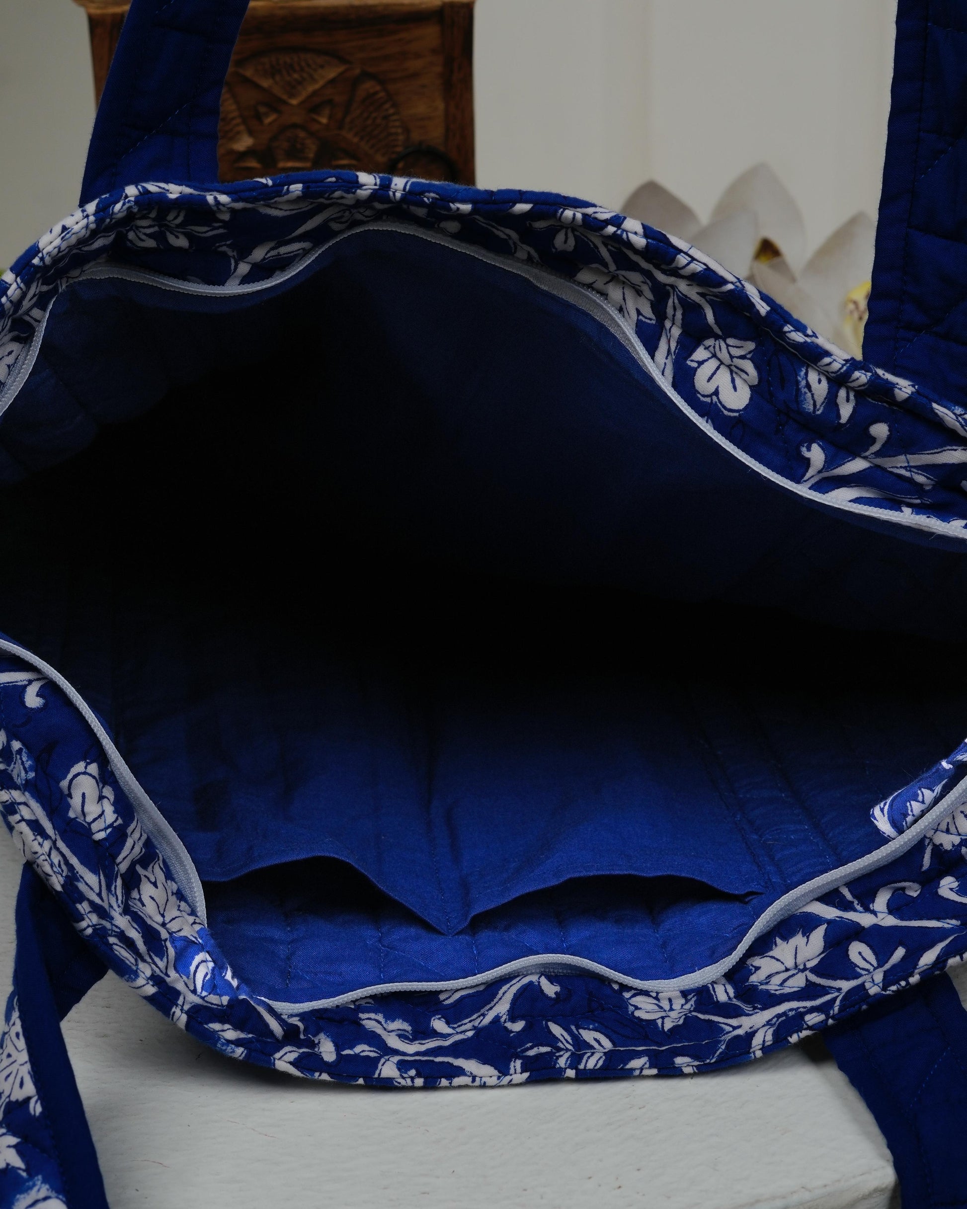 Royal Blue Quilted Tote Bag | Made in Jaipur