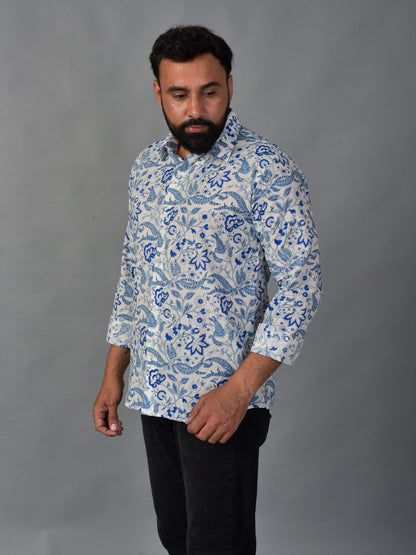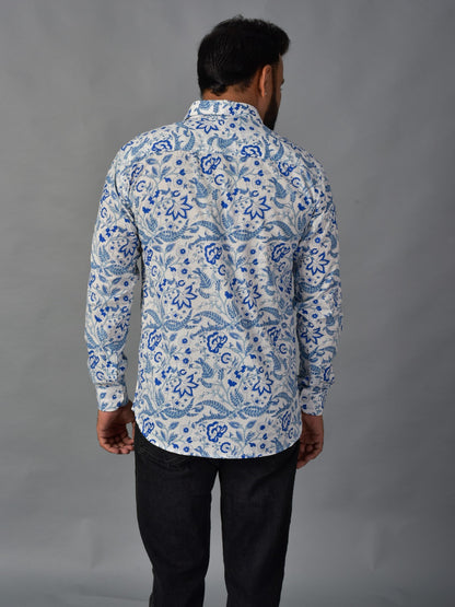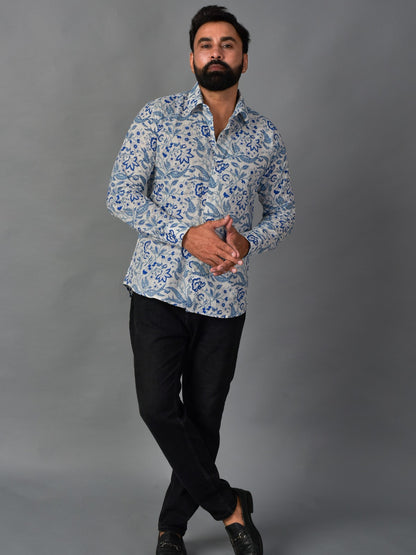 Soothing Blue Men’s Handblock Full Sleeve Shirt - Woven with Purpose, Worn with Pride