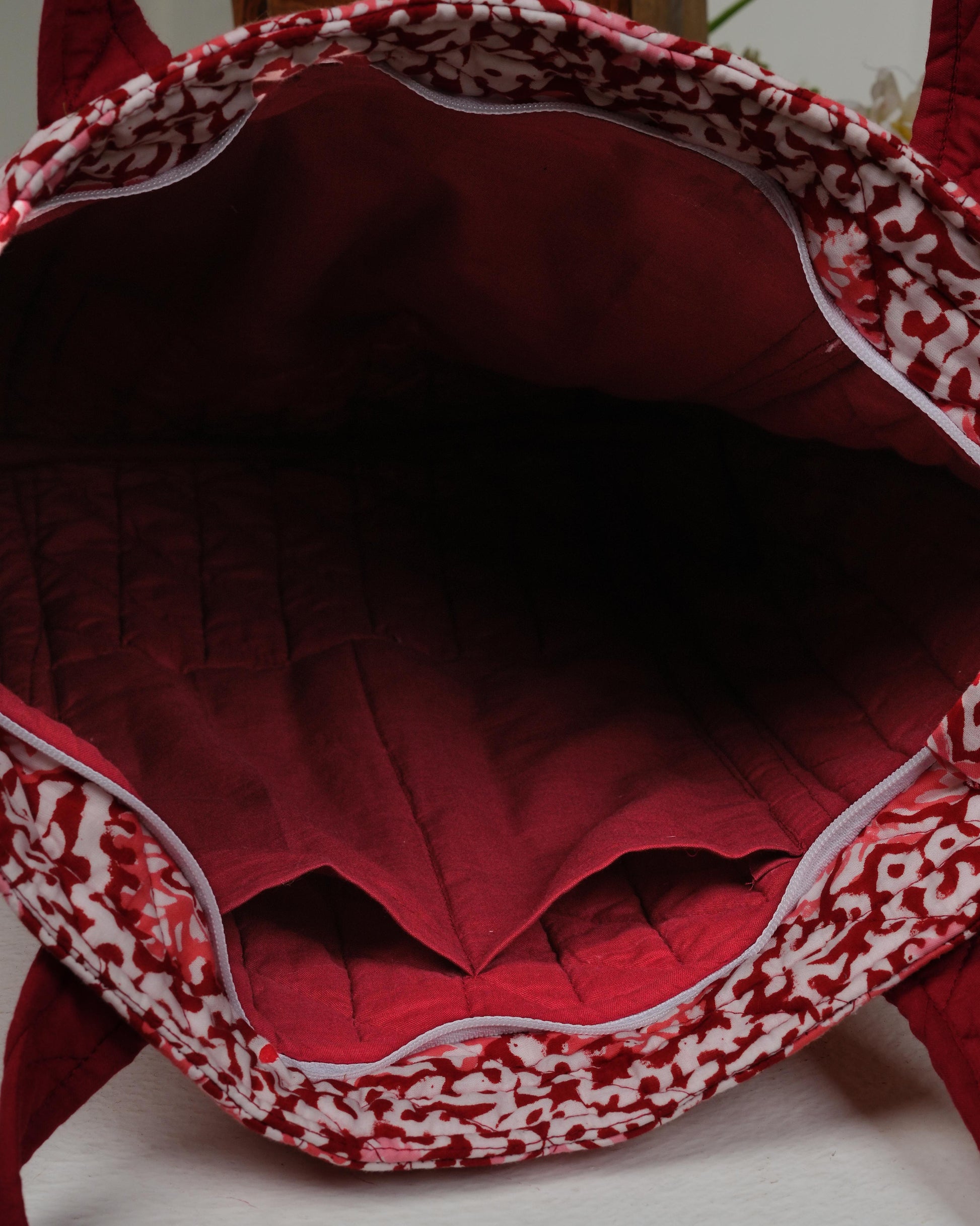 Sweet Red Quilted Tote Bag | Made in Jaipur