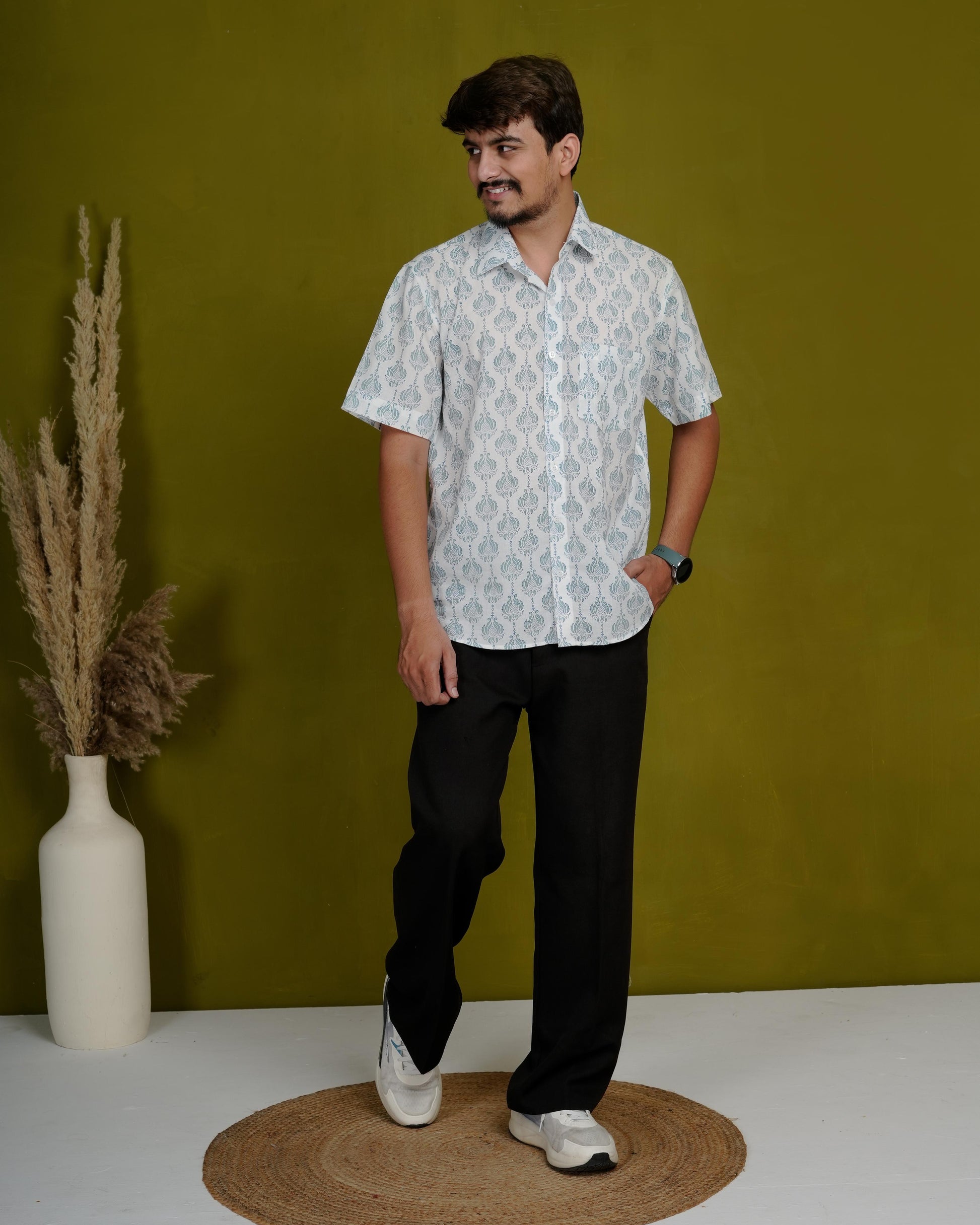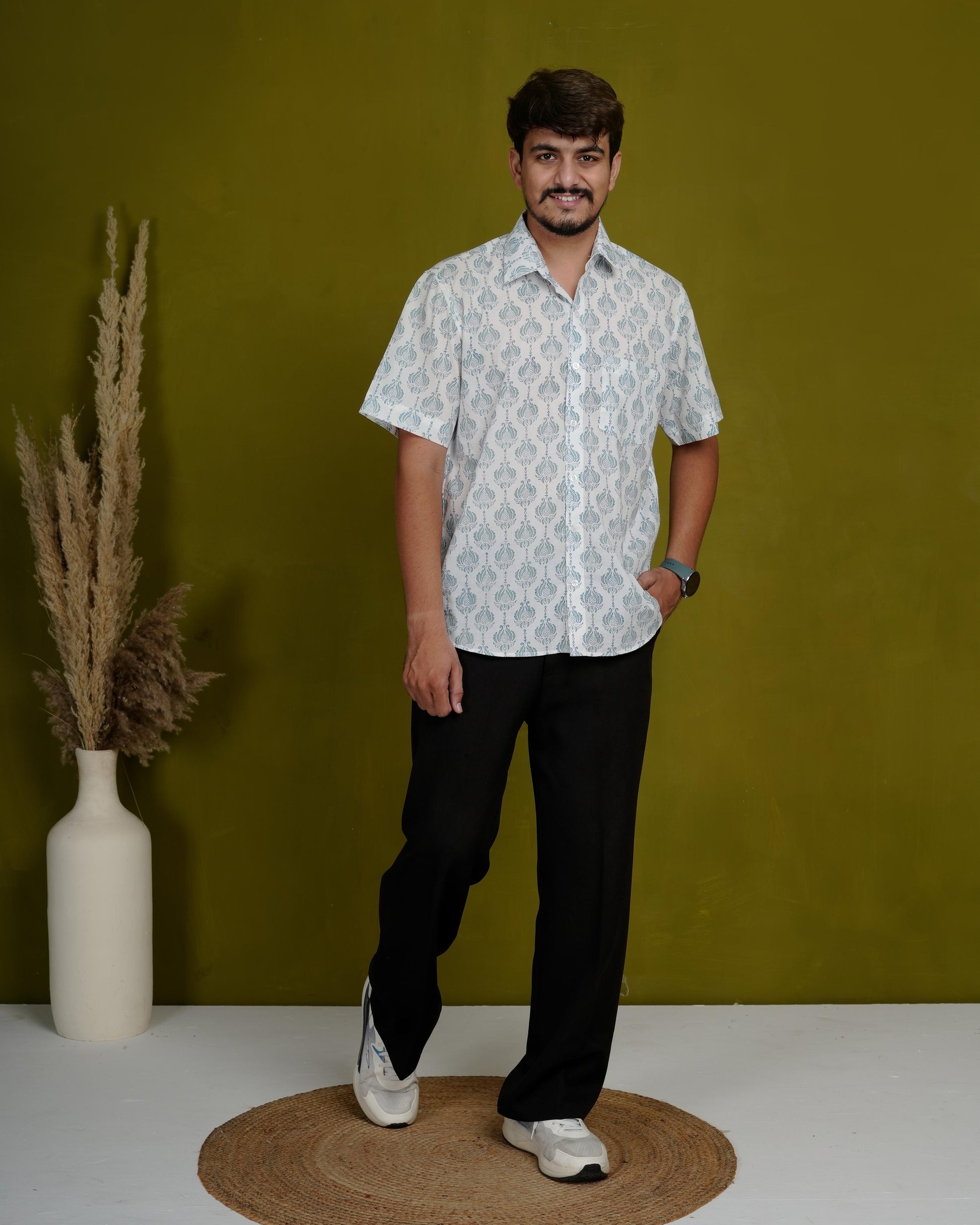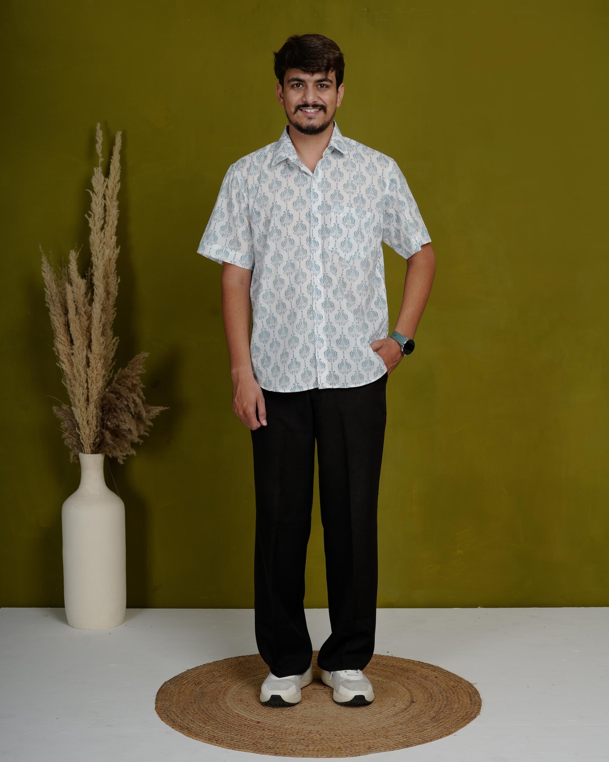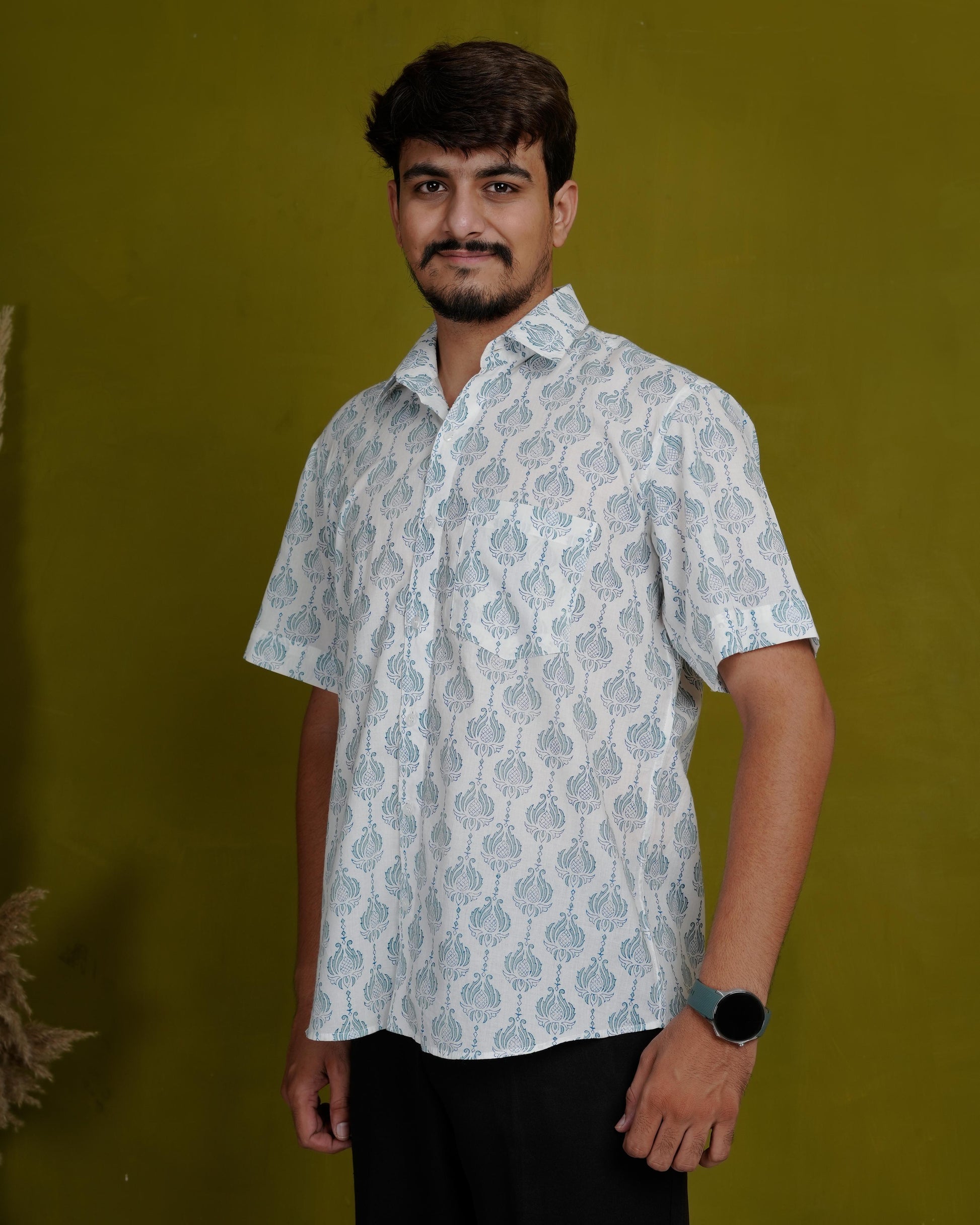 True Blue Men’s Handblock Half Sleeve Shirt - Woven with Purpose, Worn with Pride